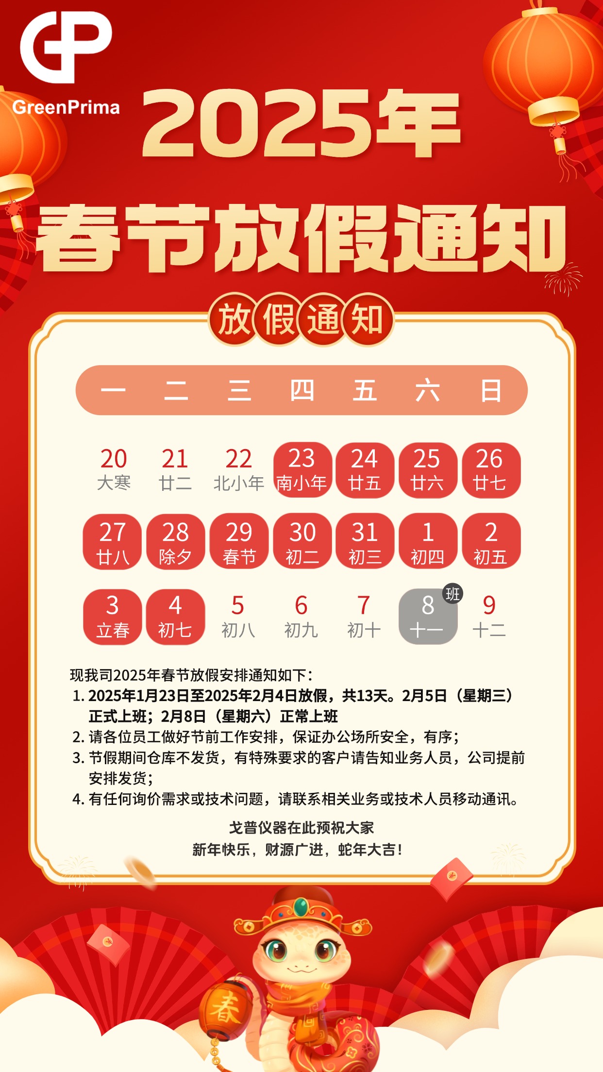 戈普通知|2025年春節放假通知